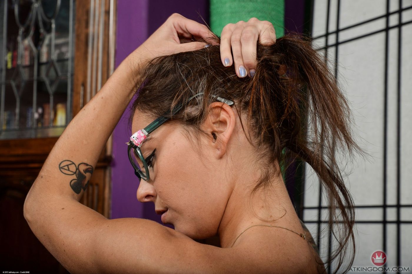 - Tags: #fit, #glasses, #lipstick, #long hair, #painted fingernails, #painted toenails, #slender, #small tits, #tattoos