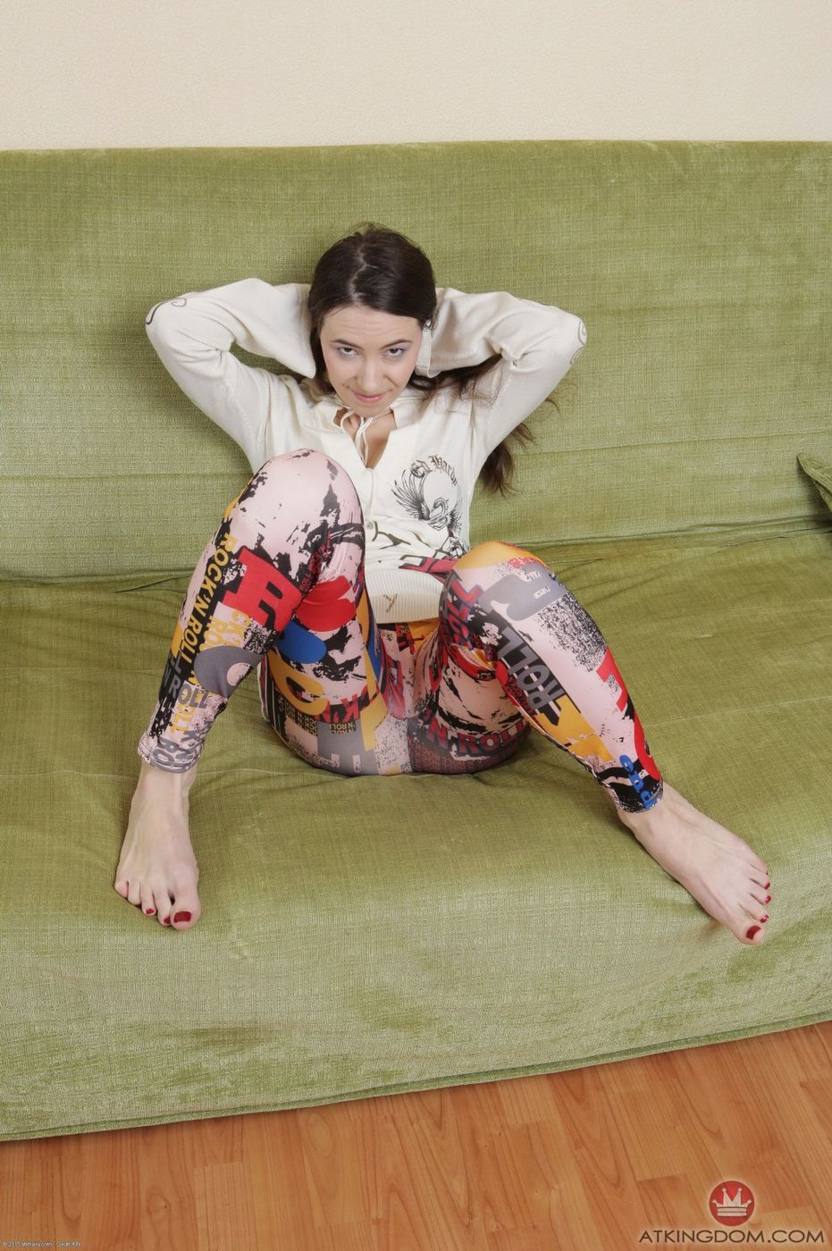 Kristina shows off her hairy pussy and young body