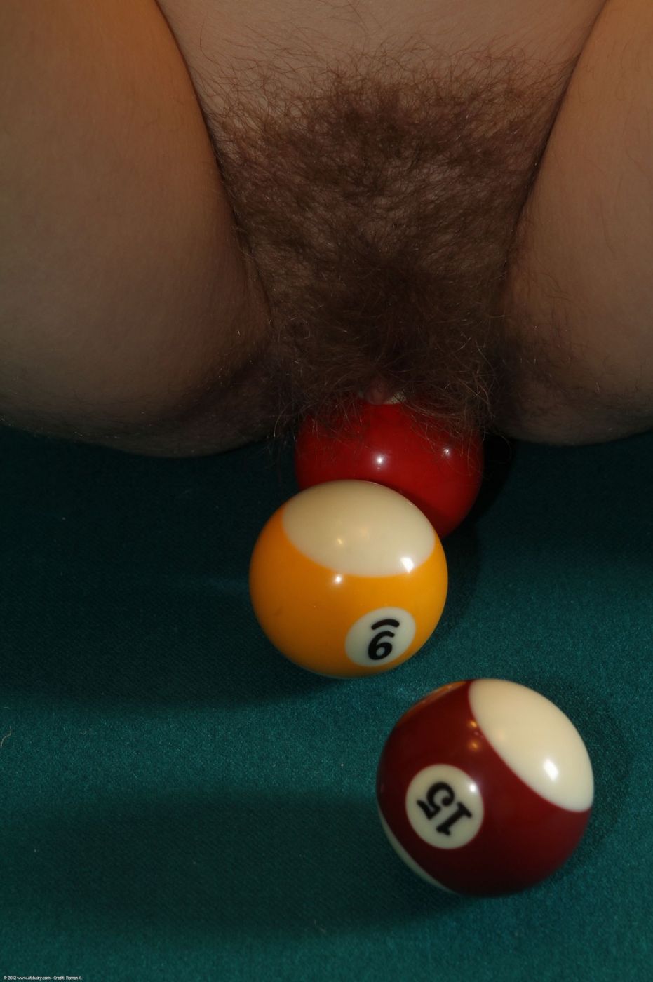 - Description: Malika loves to play pool but she loves to play with her hairy pussy even more.