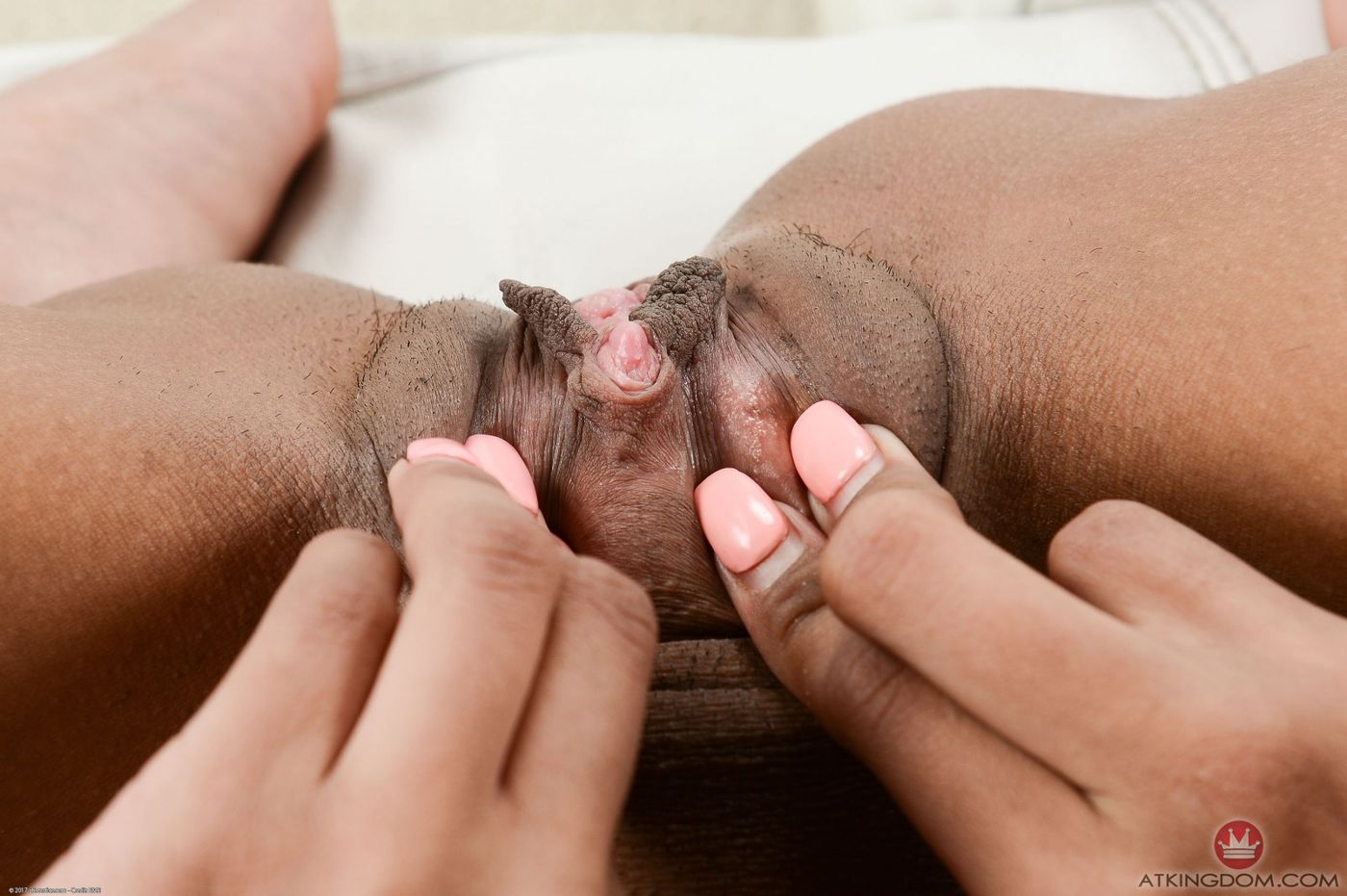 Hot ebony Nia Nacci spreads her pussy wide
