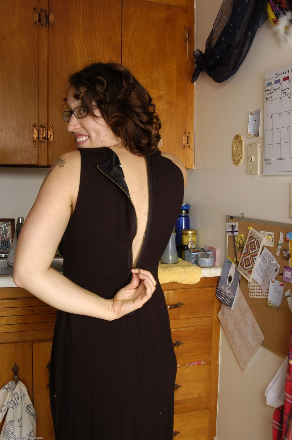 - Description: Hairy girl in glasses shows off her pussy