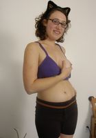 - Description: Hairy girl in glasses shows off her pussy