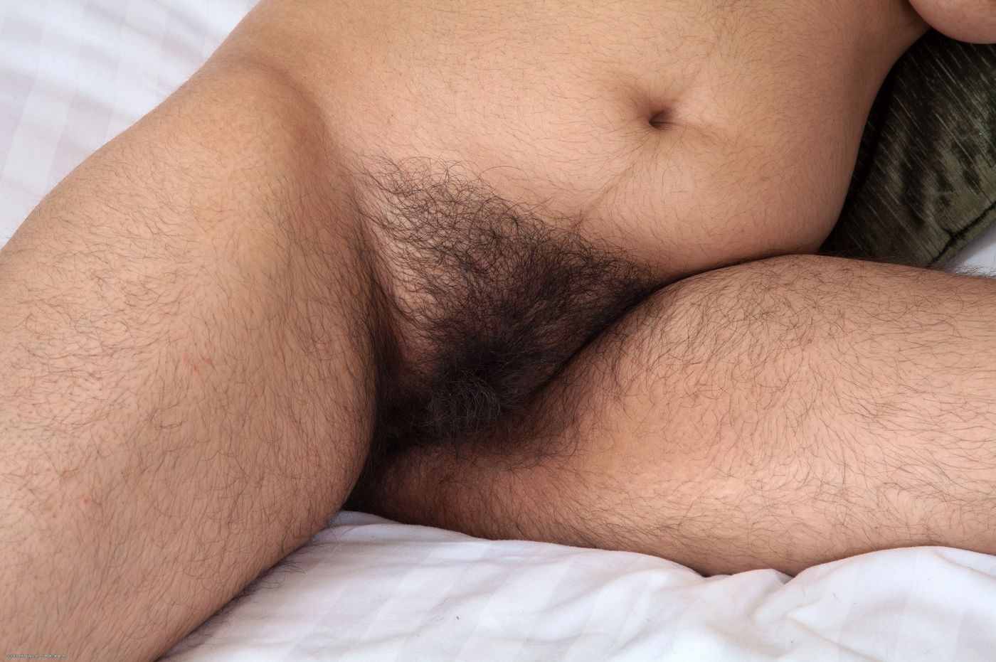 - Description: Scrary hairy Rani strips and lays back on the bed showing off her her hirsute assets.