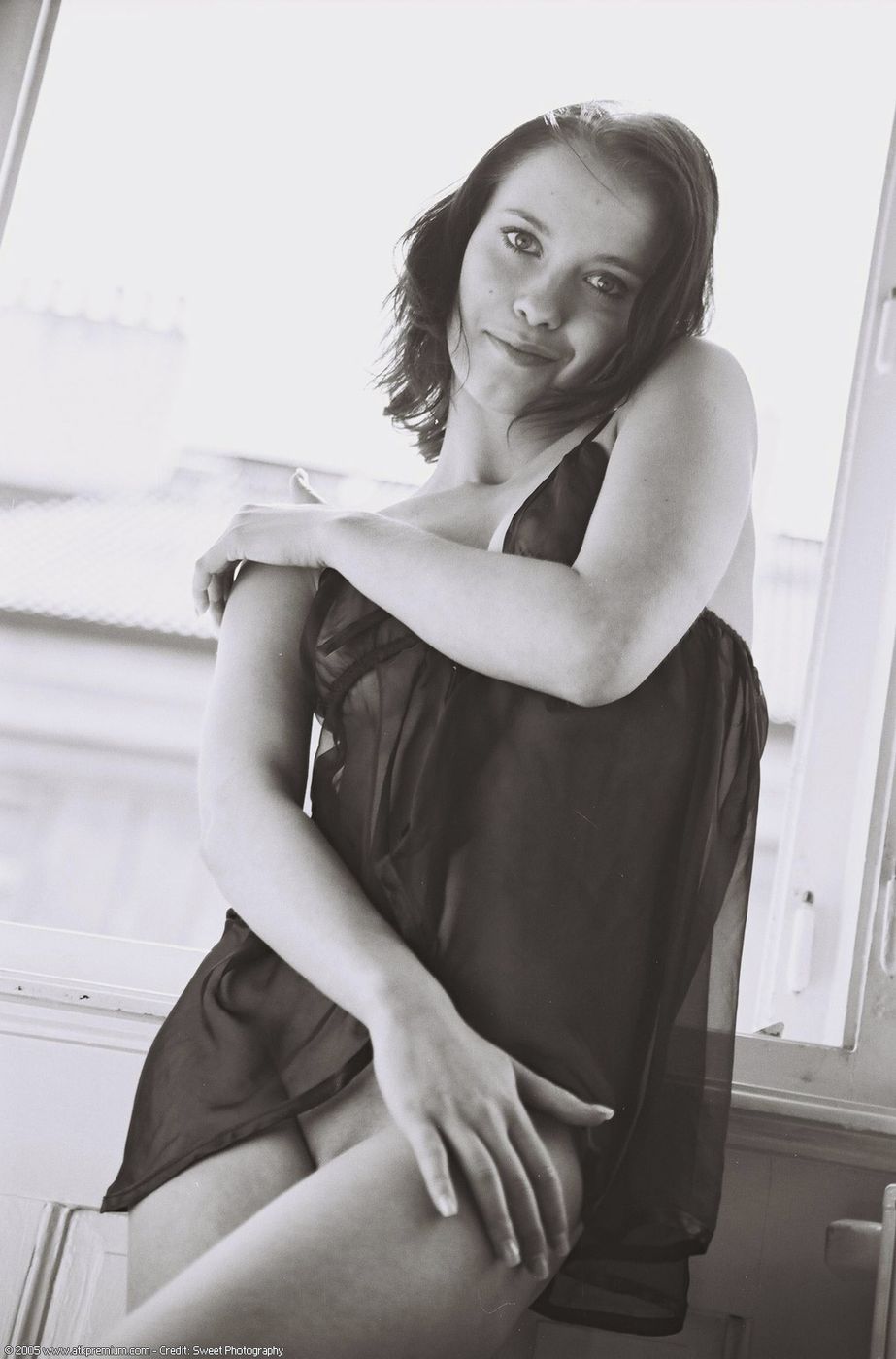 - Description: This gal has short brunette hair and we are totally into that. Enjoy as the hot little model wins your heart over with her looks. Enjoy!
